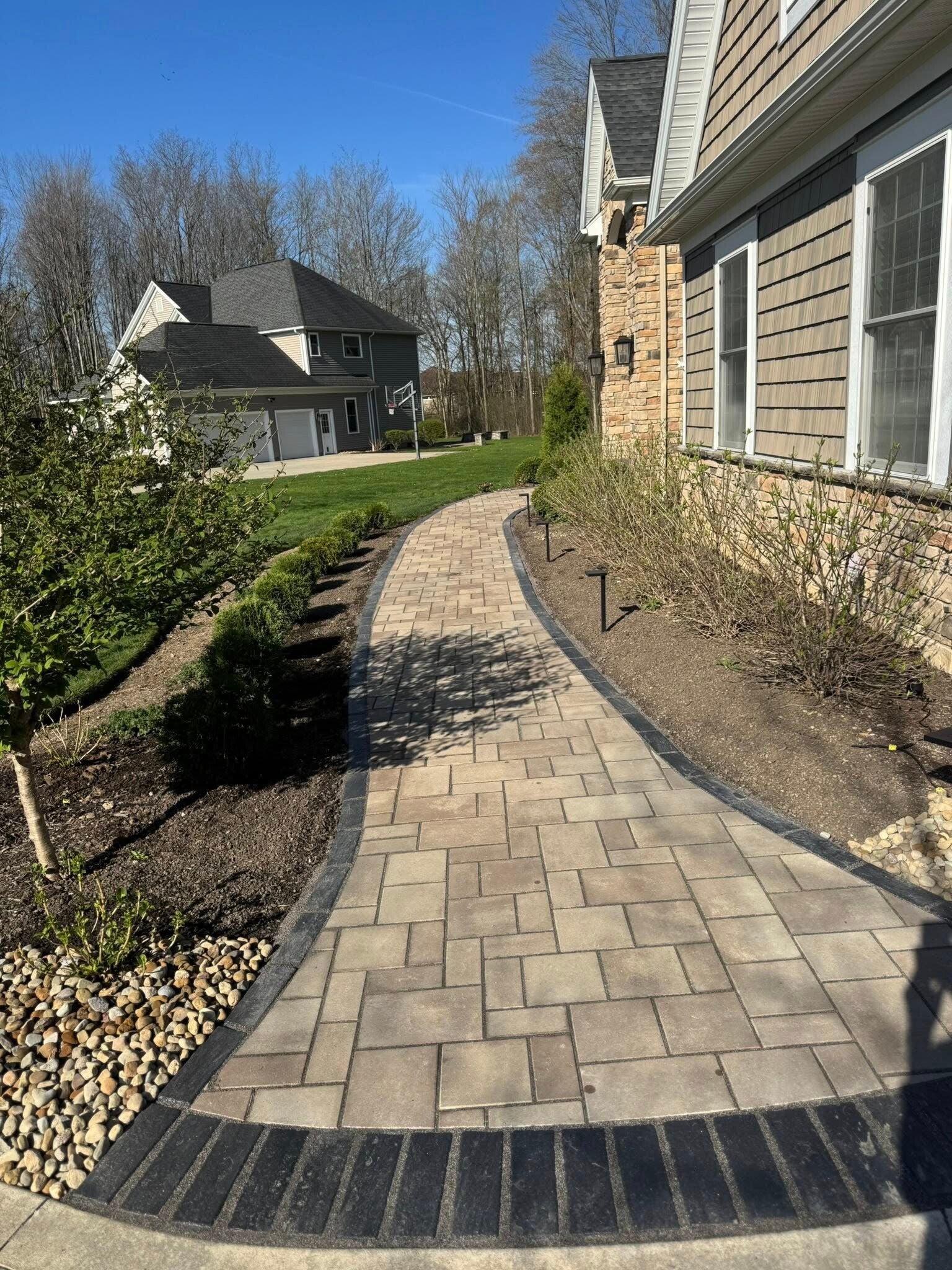 A great patio or walkway should look clean, feel solid underfoot, and hold up for years. We install paver patios and walkways that improve both the appearance and function of your outdoor space. Whether you want a simple path, a backyard entertaining area, or a full hardscape upgrade, we focus on proper base prep, clean edges, and professional finishing details. Retaining walls and landscape bed borders are also available as part of hardscape projects.